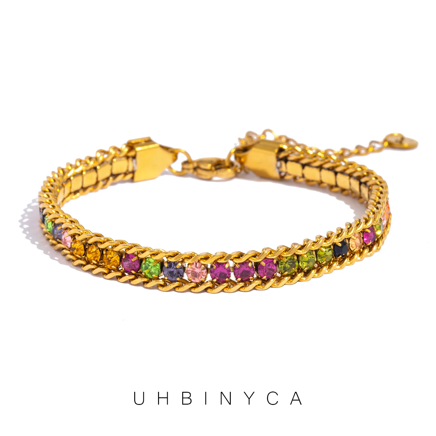 Triple Row Sparkling Bracelet - CZ Center Row, 18K Gold Plated Hypoallergenic Stainless Steel, Luxury Elegant Jewelry for Women