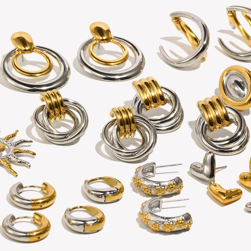 E.B.belle Stainless Steel Waterproof Ins Popular Gold Color & Silver Color Mixed Geometric Statement Earrings For Women