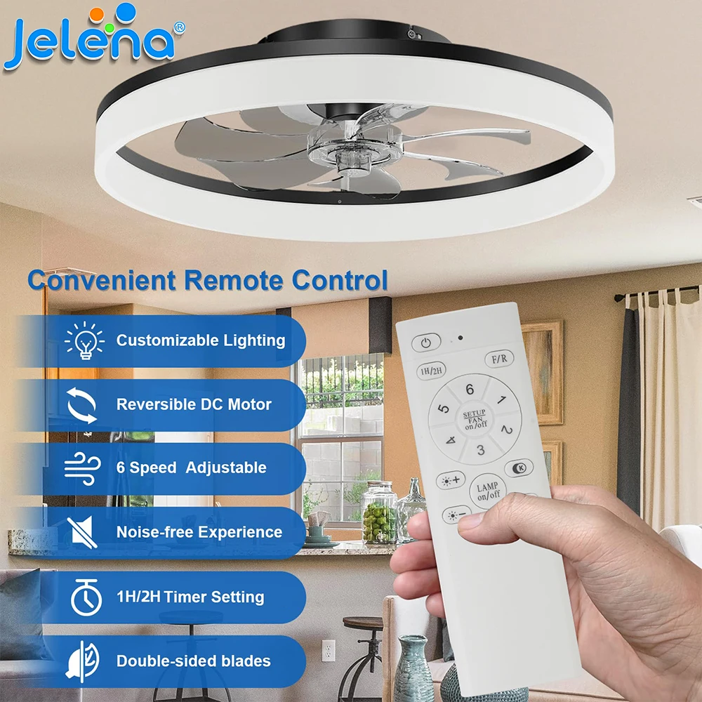 Jelena Low Floor Round Ceiling Fan with Lighting Modern 50cm LED Ceiling Lamp Fan Remote Control Kitchens Bedroom Decoration
