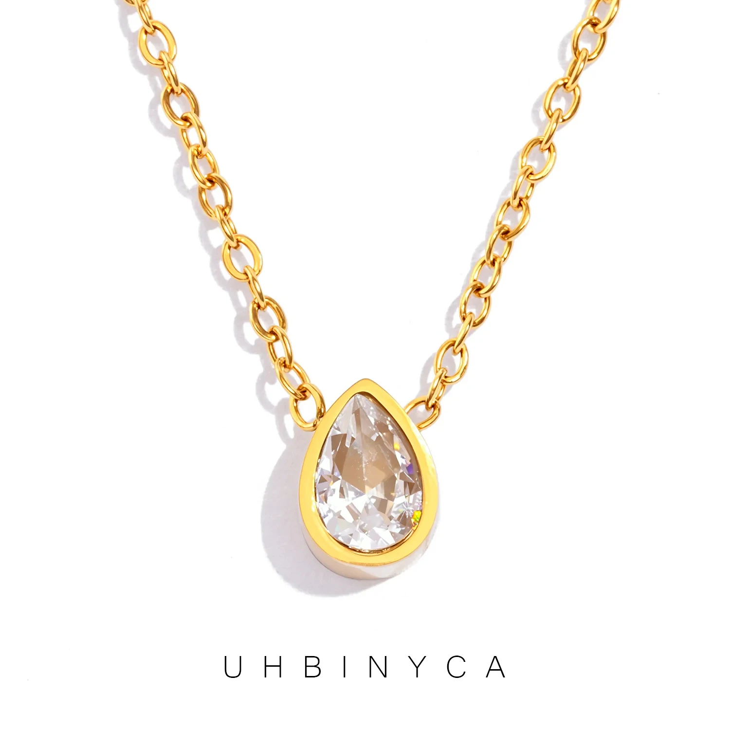 Dainty Water-drop Necklace for Women, CZ Pendant Minimalist Jewelry, Stainless Steel Waterproof Hypoallergenic Everyday