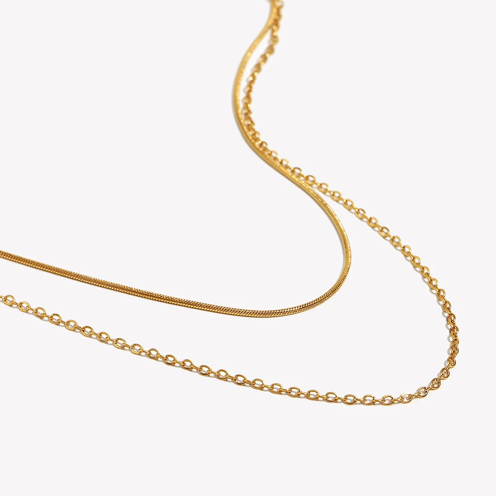 E.B.belle PVD Plated Stainless Steel Double Layer Snake O-Chain Necklace Women's Stackable Statement Jewelry