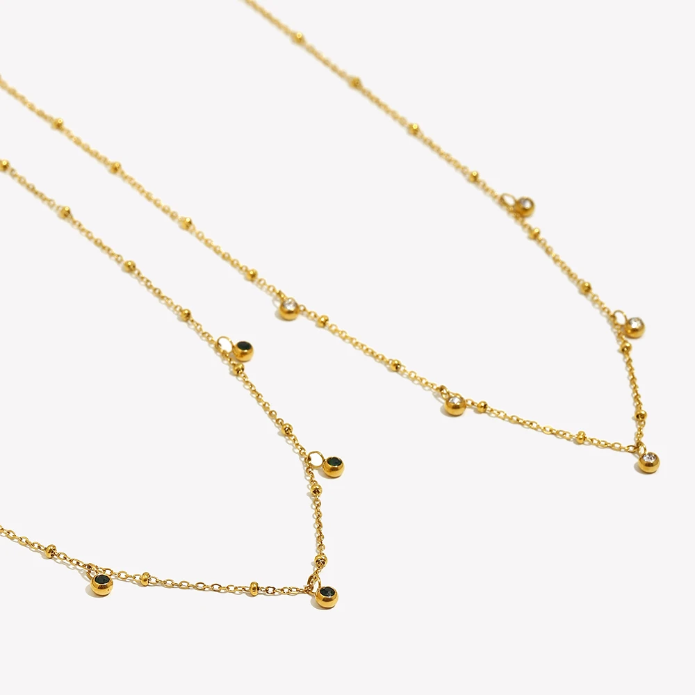 E.B.belle Green White Zircon Necklace Hypoallergenic 18K Gold Plated Necklace 316L Stainless Steel Accessories