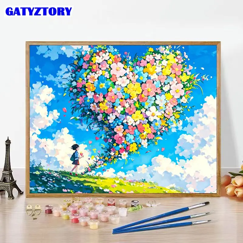 GATYZTORY Painting By Number Heart Flowers For Adults Picture By Numbers Acrylic Paint On Canvas DIY Frame Home Decoration