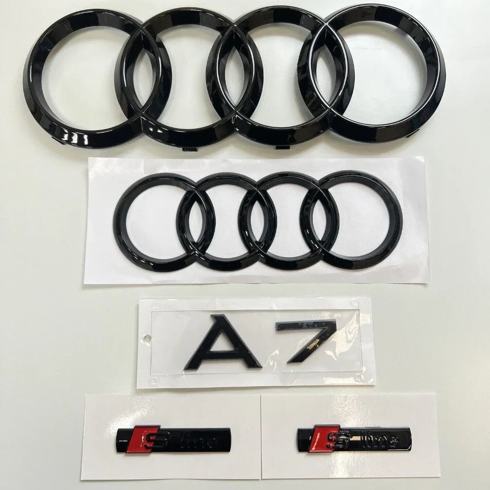 2PCS 4 Ring logo ABS Silver/Black Car Hood Front Bonnet Grill Rear Trunk Emblem Badge Sticker 1P A7 mark 2P SLine For Audi A7