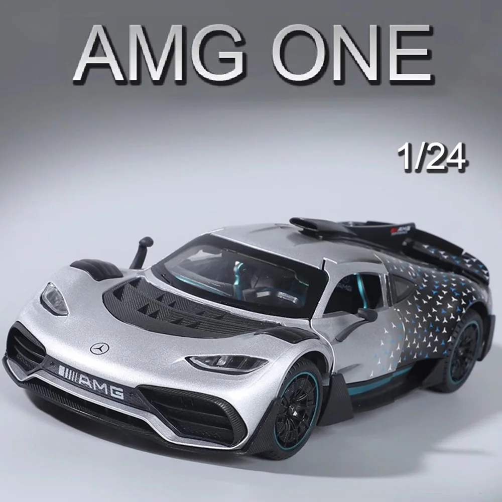 Scale 1:24 AMG ONE Sports Car Model Toy Modified Metal Diecast Free Wheeling Vehicles Simulation Sound & Light Gift for Children