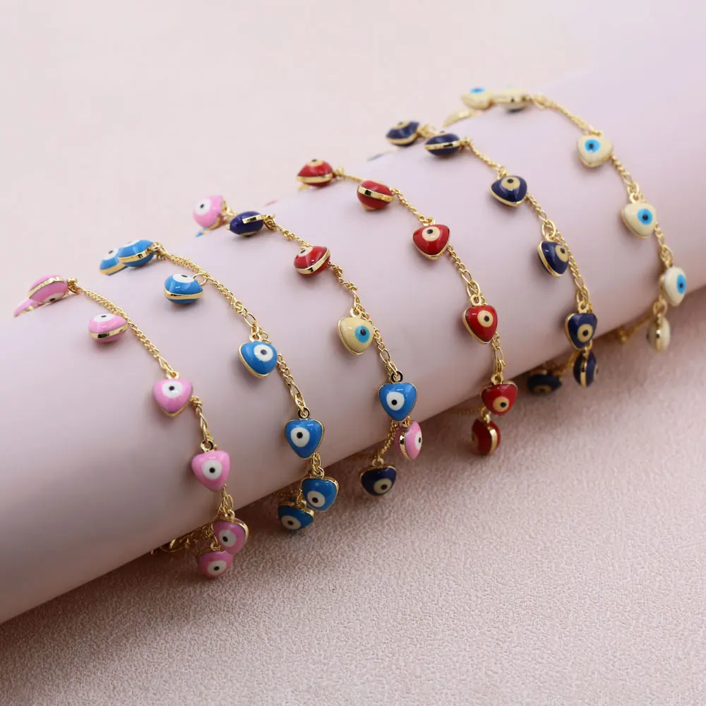 Retro Versatile Plated Gold Copper Dropping Oil Devil's Eye Adjustable Bracelt with Tail Chain Men Women Bohemian Jewelry