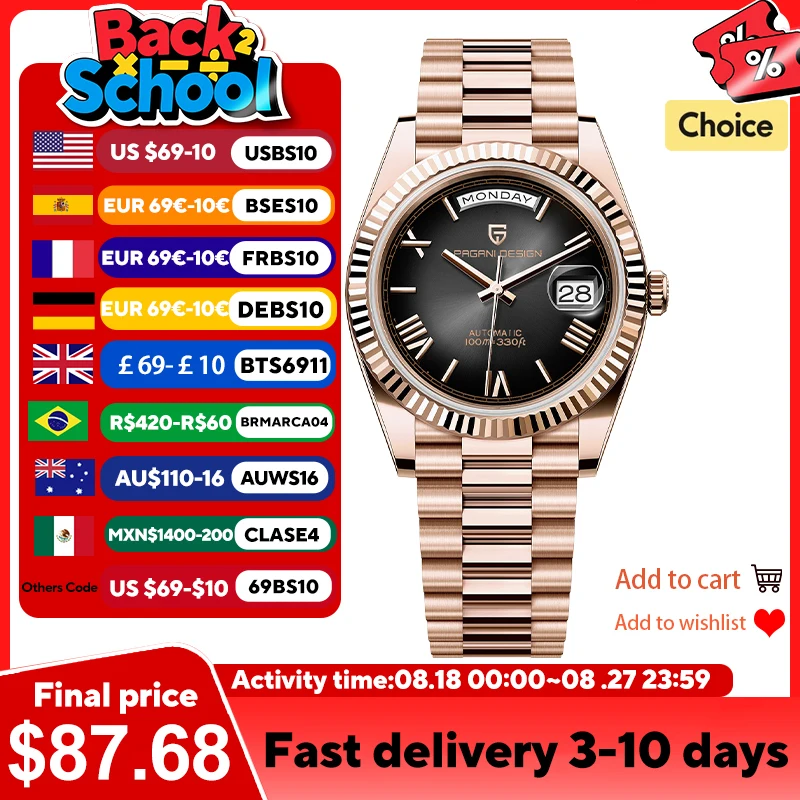 PAGANI DESIGN 2025 New Luxury Rose Gold DD40 Automatic Watch For Men NH36A Mechanical Wristwatch Men Stainless steel Waterproof