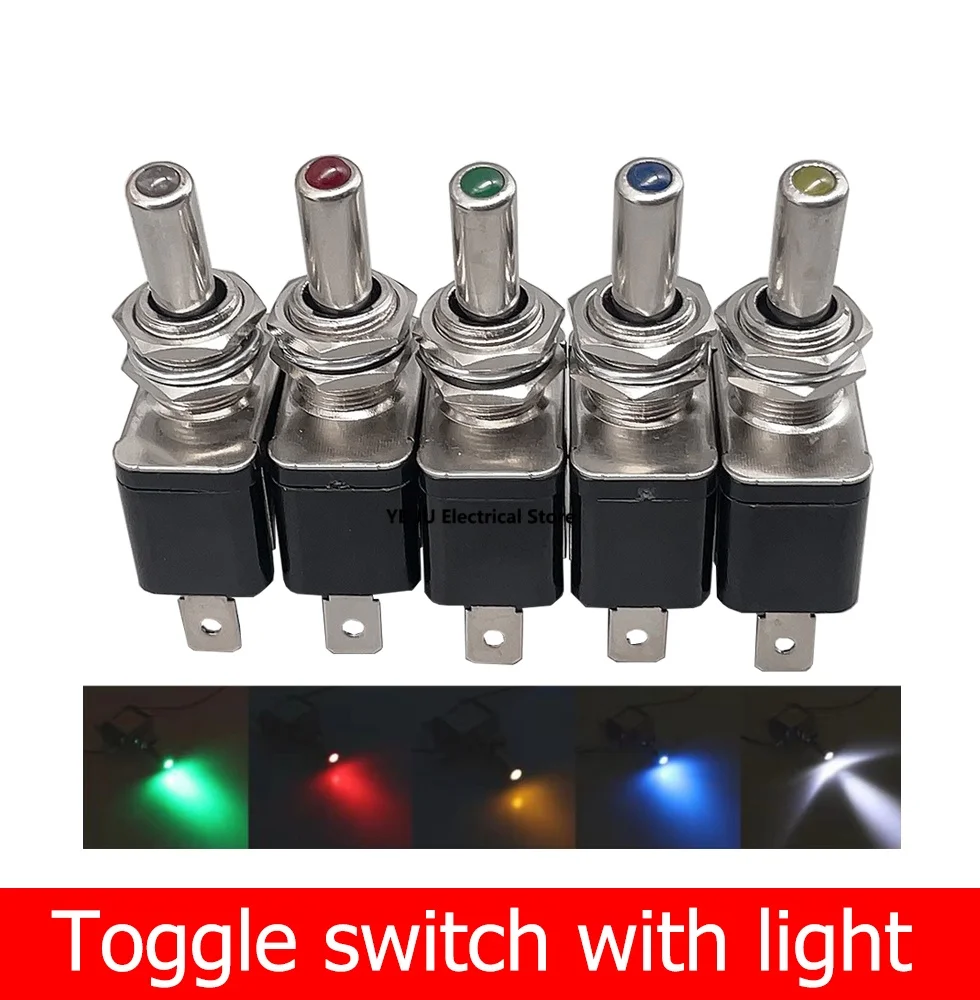 1PCS DC 12V 20A Car Auto Cover LED Blue Green Red White Yellow Light Toggle Switch Control On/Off Durable Light