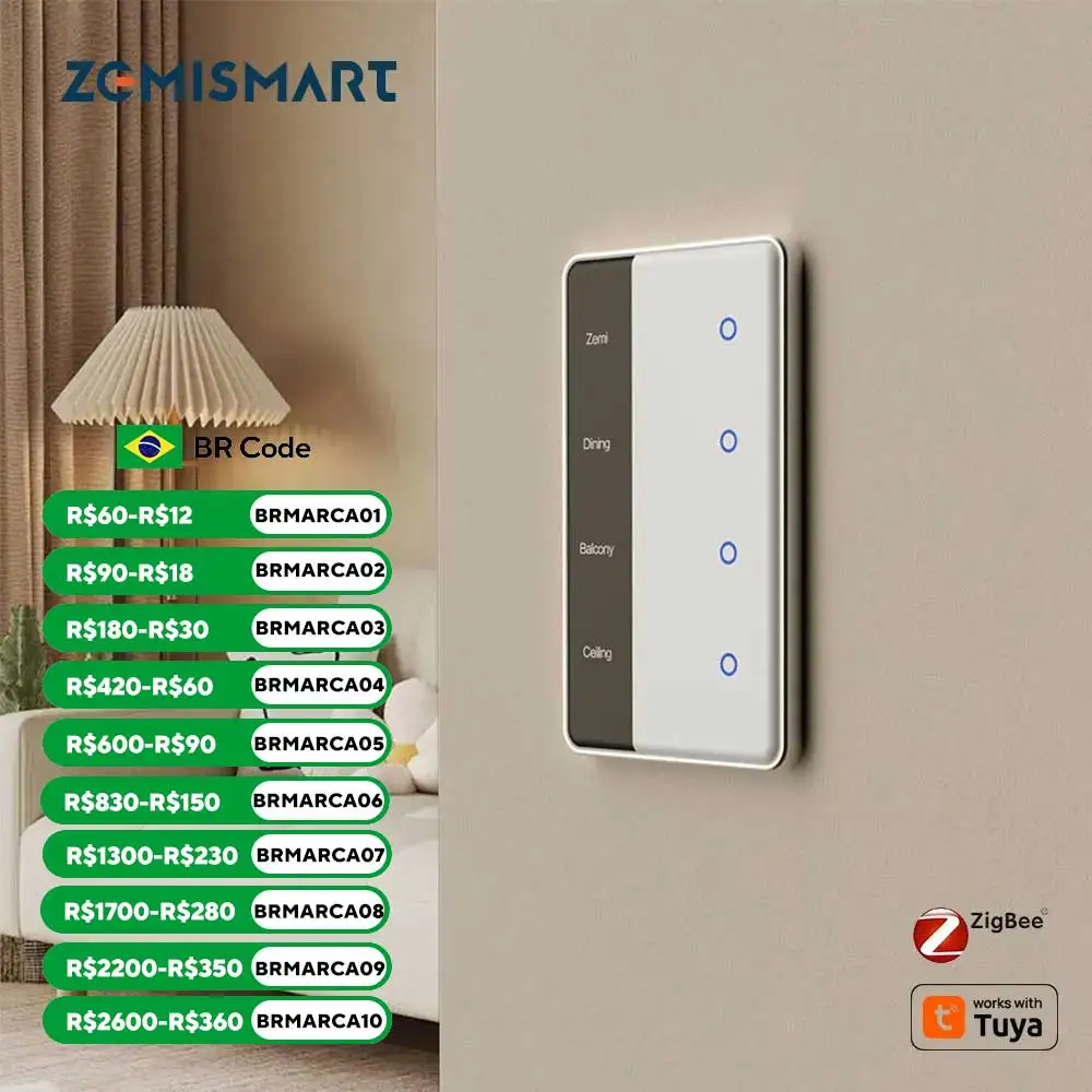 Zemismart DIY Name Switch Zigbee Smart Display Screen Touch Light Switch US Type Works with Tuya Alexa Google Home Voice Control