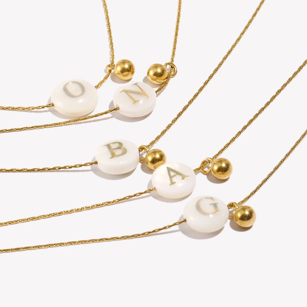 E.B.belle Mini White Round Beads Letters Pendant Necklace 18k Gold Plated Stainless Steel Women Initial Jewelry Accessories