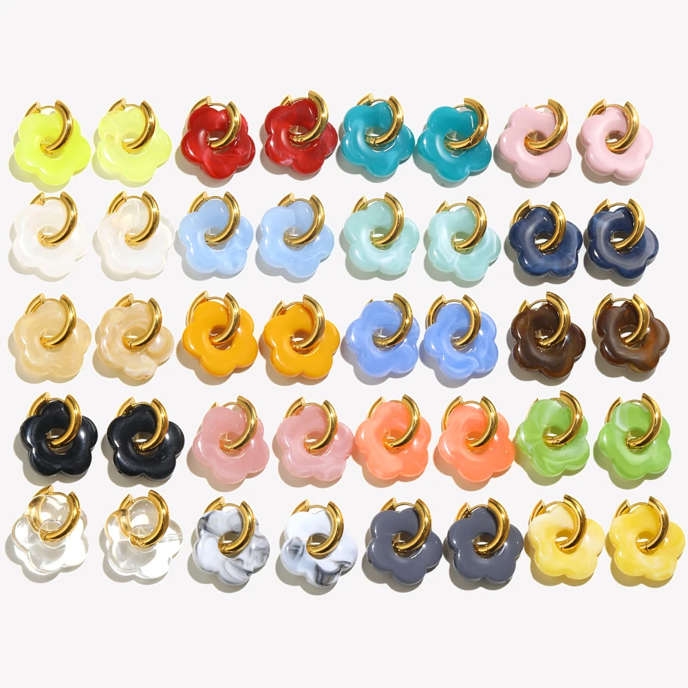 E.B.belle Resin flower Accessories Hoop Earrings Y2K Women's Earrings 18K Gold Plated Colorful Tarnish Free 316L Stainless Steel