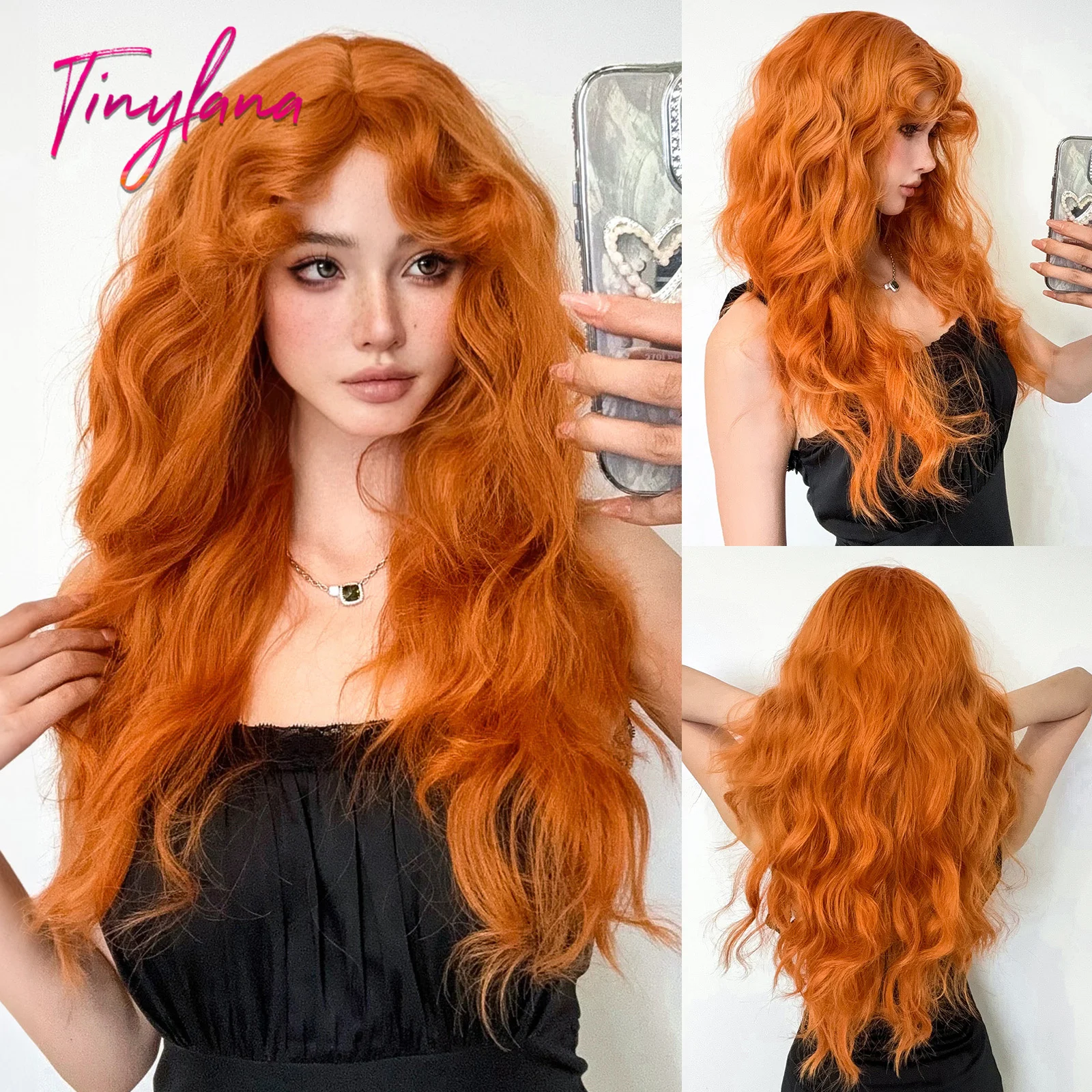 Orange Ginger Synthetic Wig Long Curly Wavy Wigs for Women with Bangs Halloween Cosplay Party Daily Natural Heat Resistant Wig