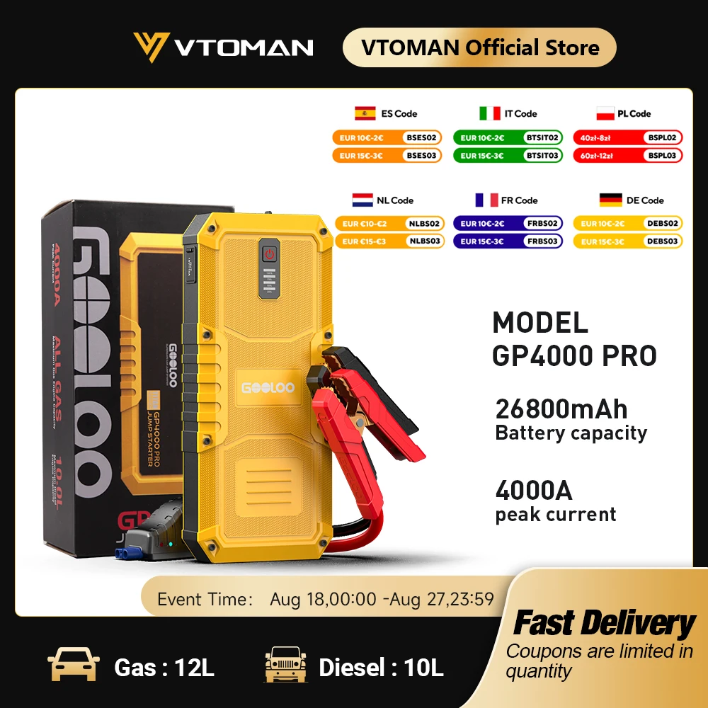 GOOLOO 4000A Start Power Bank 26800mAh Jump Starter Car Booster External Battery 12V Starting Device for Petrol Diesel Powerbank