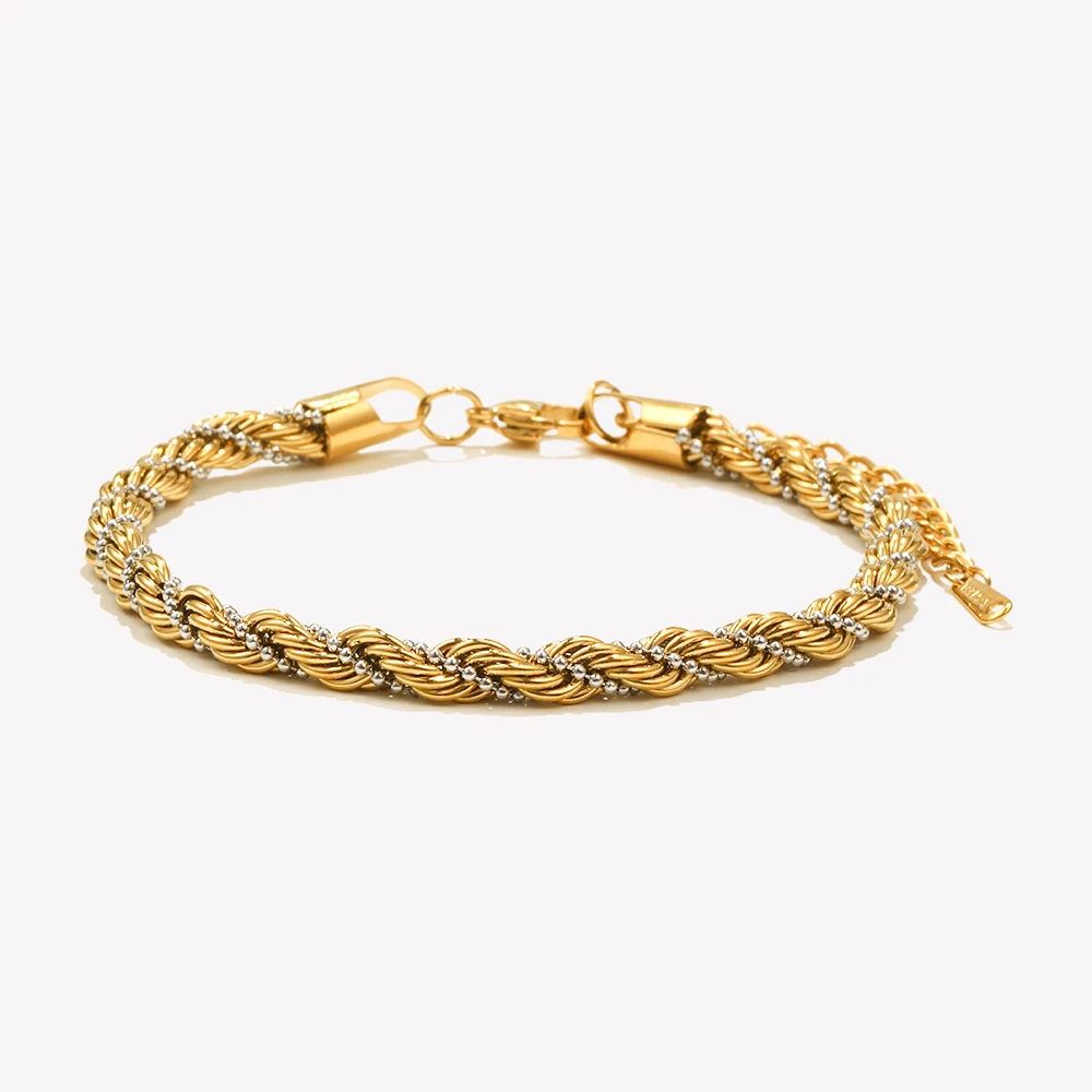 E.B.belle Mixed Color Clip Beads Twisted Bracelet Anklet Chain PVD Plated Stainless Steel Women Jewelry Accessory
