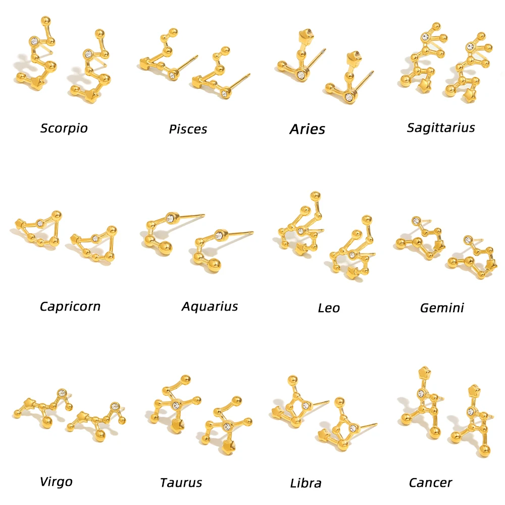 E.B.belle New Mini Twelve Constellation Series Stud Earrings 18K Gold Plated Stainless Steel Women Girls Fashion Jewelry