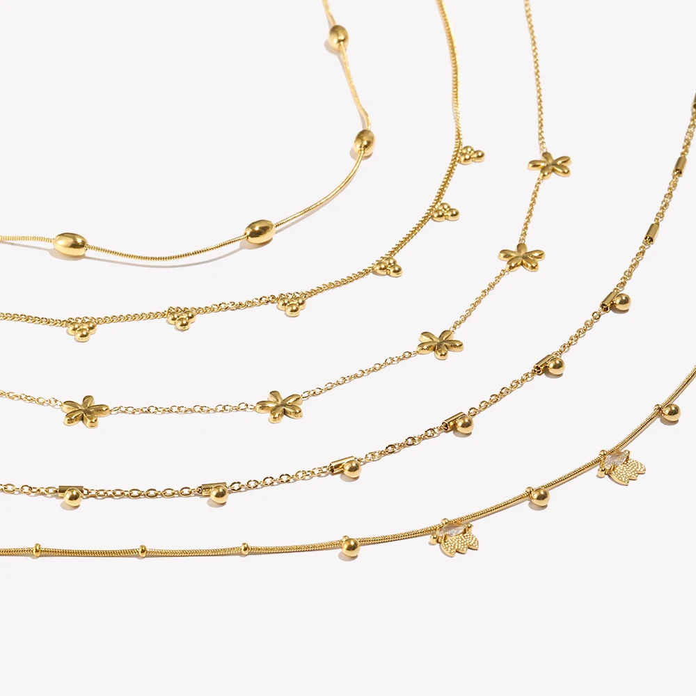 E.B.belle Mini Clear Rhinestone Flower Heart Pendant Necklace 18K Gold Plated 316L Stainless Steel Thin chain Neck Jewelry