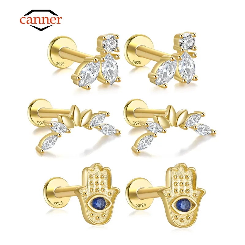 CANNER 1pair 925 Sterling Silver Zircon Small Trend Ear Cartilage Piercing Stud Earrings for Women Jewelry New Arrivals 2023