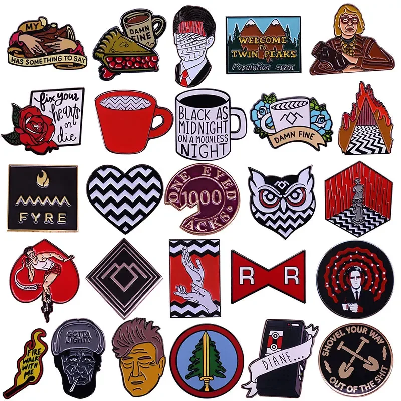 Suspense Movies Twin Peaks Enamel Pins Welcome To Twin Peaks Metal Brooch Badge Fashion Jewellery Backpack Accessory Gifts
