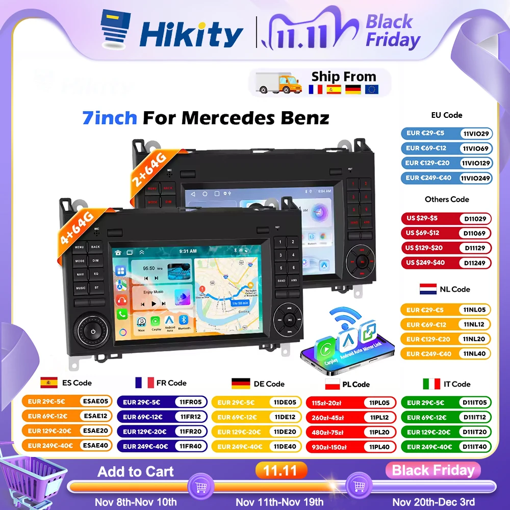 Hikity Android Car radio Auto Radio For Mercedes Benz Sprinter B200 A-class B-class Viano W311 W906 W209 W315 Carplay 4G GPS