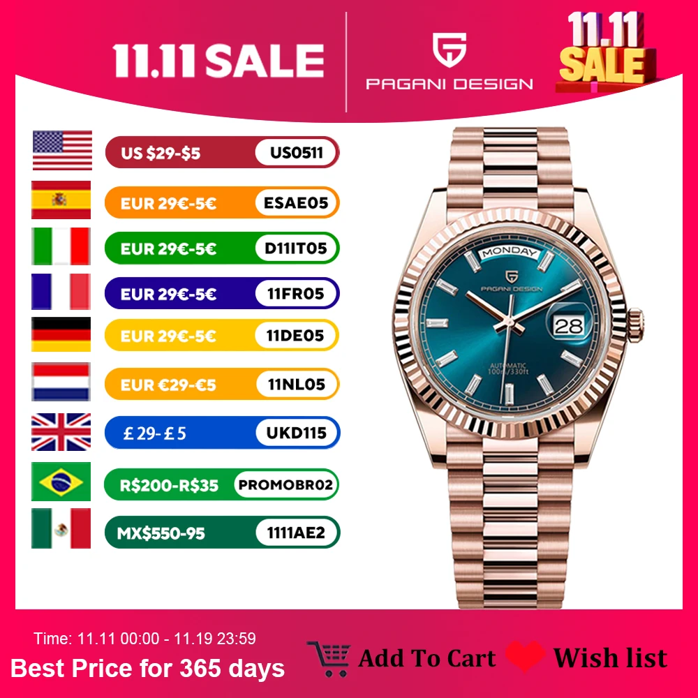 PAGANI DESIGN DD36 Mens Watches Rose Gold Luxury Automatic Watch For Men Mechanical Wristwatch AR Sapphire Waterproof Clock Gift