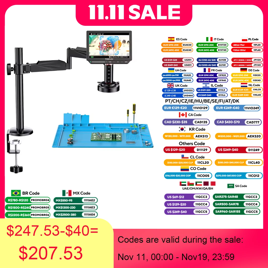 TOMLOV Autofocus 4K Digital Microscope 2000X 8" TM4K-AF Flex Arm HDMI Electronics Soldering Microscope for Mobile Phone Repair
