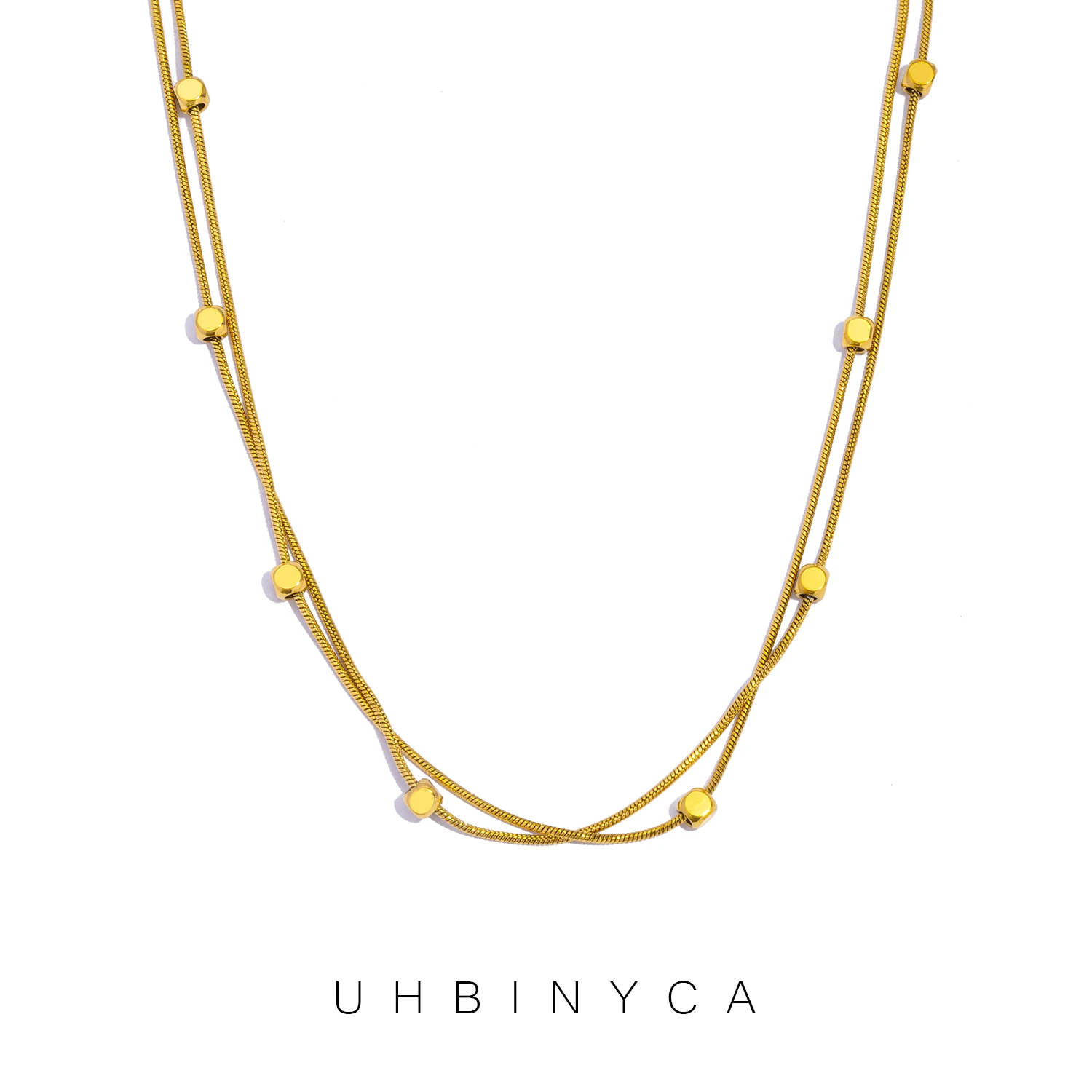 Double Layer Chain Necklace & Bracelet for Women, 18K Gold Plated Stainless Steel, Minimalist Hypoallergenic Daily Wear Jewelry