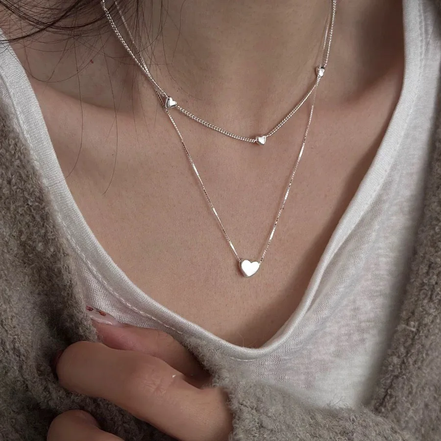 S925 Sterling Silver Necklaces For Women Simple Chain Fashion Minimalist Pendant Heart Necklaces Birthday Gift