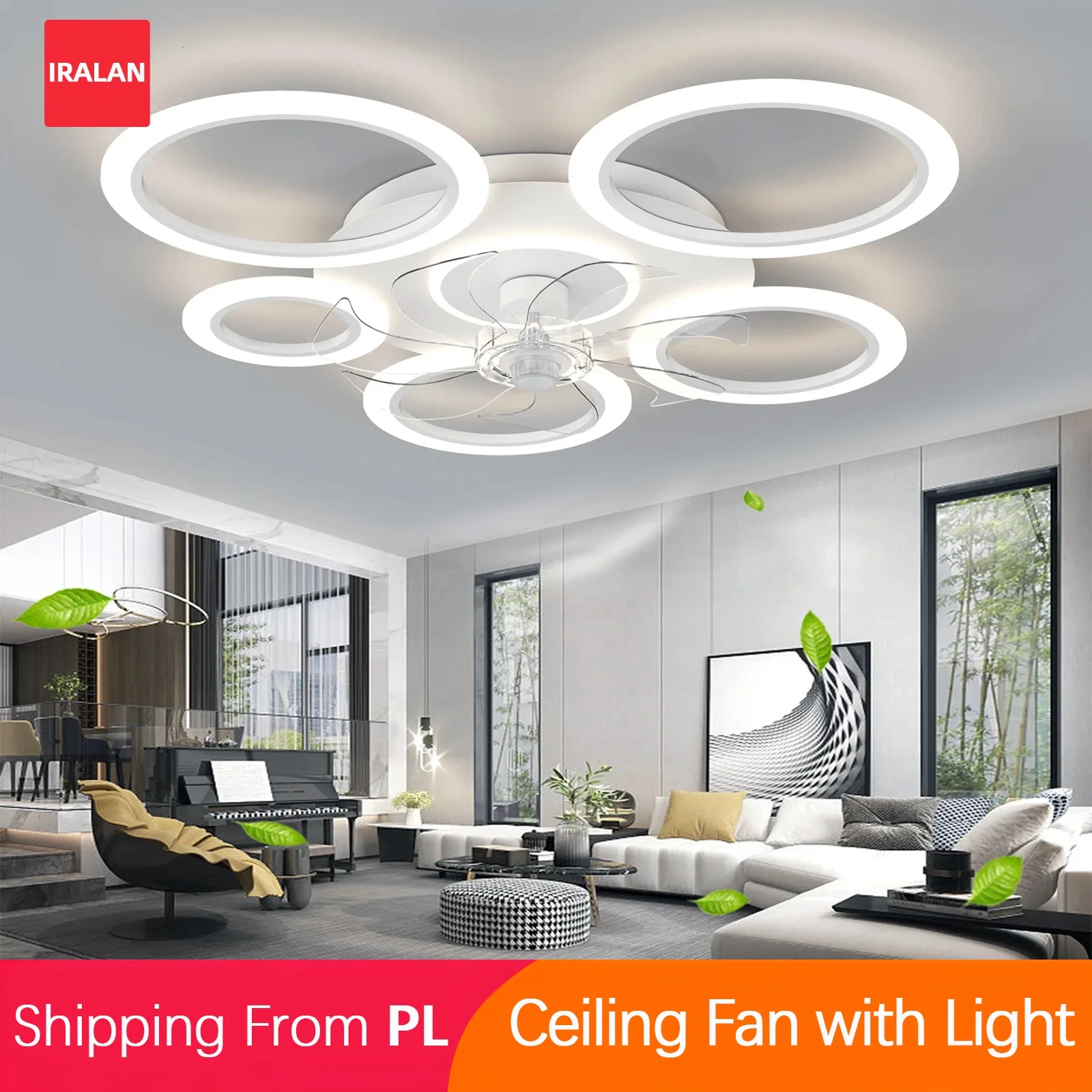 New Ceiling Lamp Fan Nordic Smart Ring Electric Fan Ceiling Lamp Black and White with Remote Control Dimmable Led Light Fan