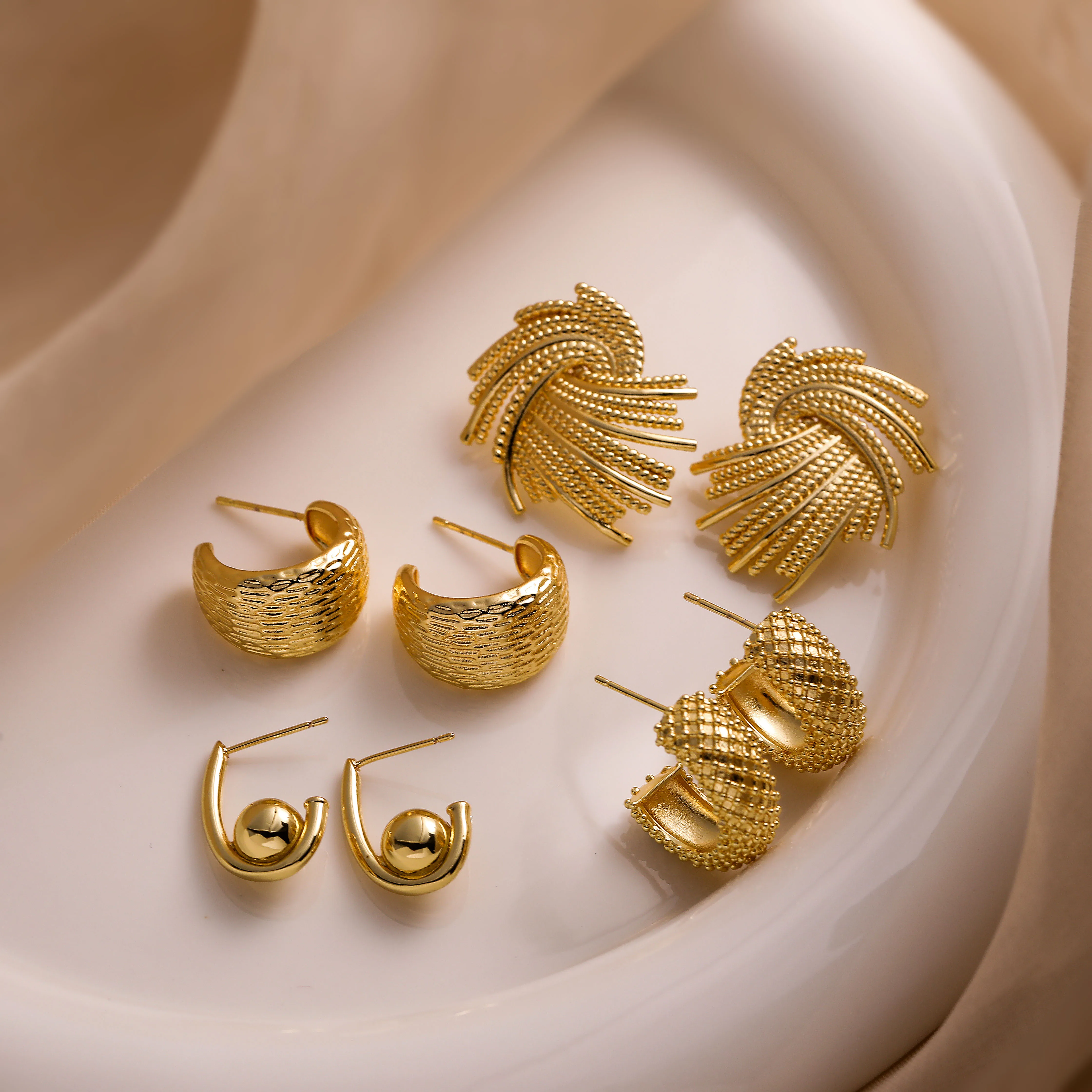 HECHENG, Chunky Ear Studs for Women ,Brass 18K Real Gold Plated Circle ball Ear Jewelry Dropshipping