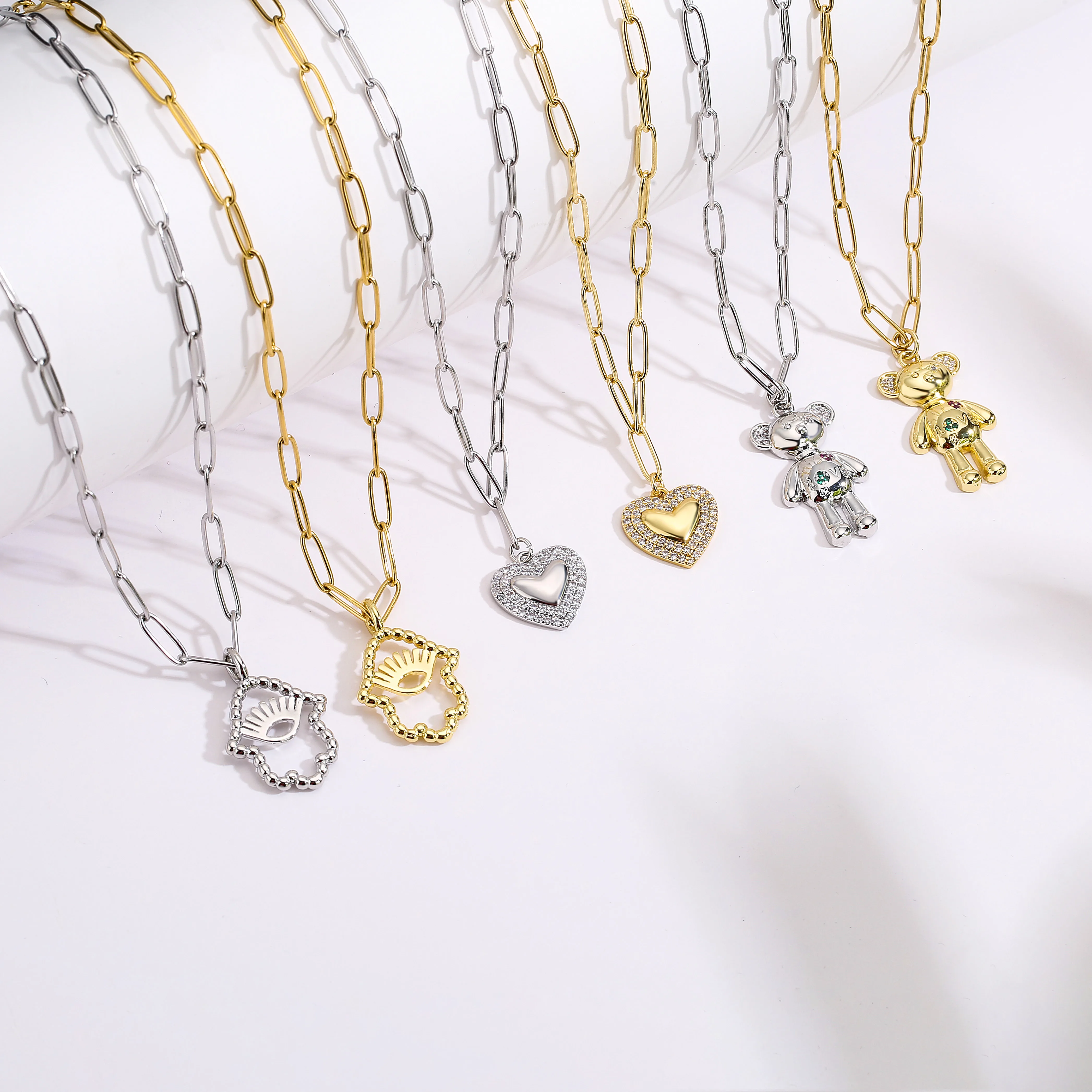 HECHENG,Exquisite Fashion Bear Necklace Lovely Heart Palm Pendant Jewelry Necklace for Women Birthday Party Anniversary Gift