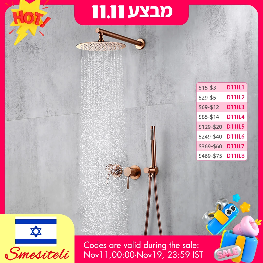 Rainfall Shower Set Rose Gold Wall Mounted Bathroom Shower Mixer Brass Faucet Hot Cold Water Mixer Tap With Head 8/10/12 Inch