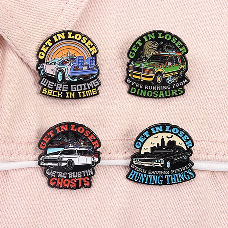 Get In Loser We're Bustin Ghost Enamel Pin We're Going Back In Time Sci-Fi Film Brooches Lapel Badge Jewelry Gift For Friends