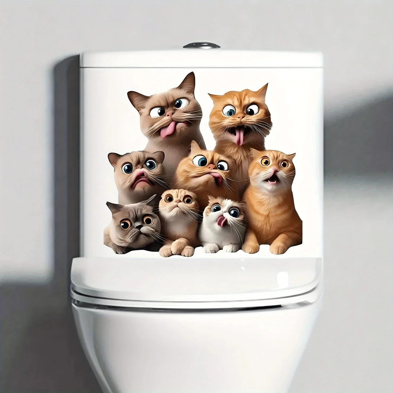 MT1166# Playful Kittens Toilet Lid Decal - Waterproof, Self-Adhesive Bathroom Sticker, Easy to Apply & Remove, Ceramic Surface