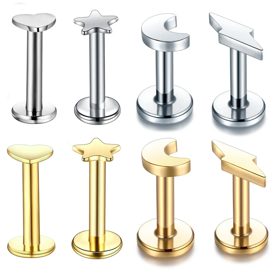 10Pcs/lot Steel Heart Star Moon Ear Tragus Cartilage Piercing Labret Stud Lip Ring Labret Piercing Body Piercing Jewelry