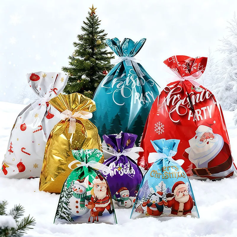 Large Christmas Drawstring Gift Bags Sets Candy Packaging Bag Santa Claus Snowman Snowflake Favor Bags Decor Xmas Supplies