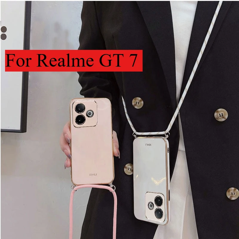 For Realme GT 7 GT7Pro Crossbody Necklace Chain Cord Lanyard Plating Case for OPPO A5 Pro 5G Silicone Bumper Soft TPU Back Cover