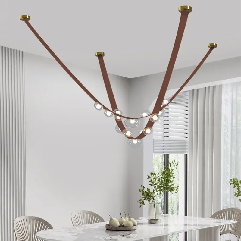 Modern Creative Villa Chandelier Living Room Lamp Staircase Hotel Leather Hanging Lights New Design Glass Decor LED Light