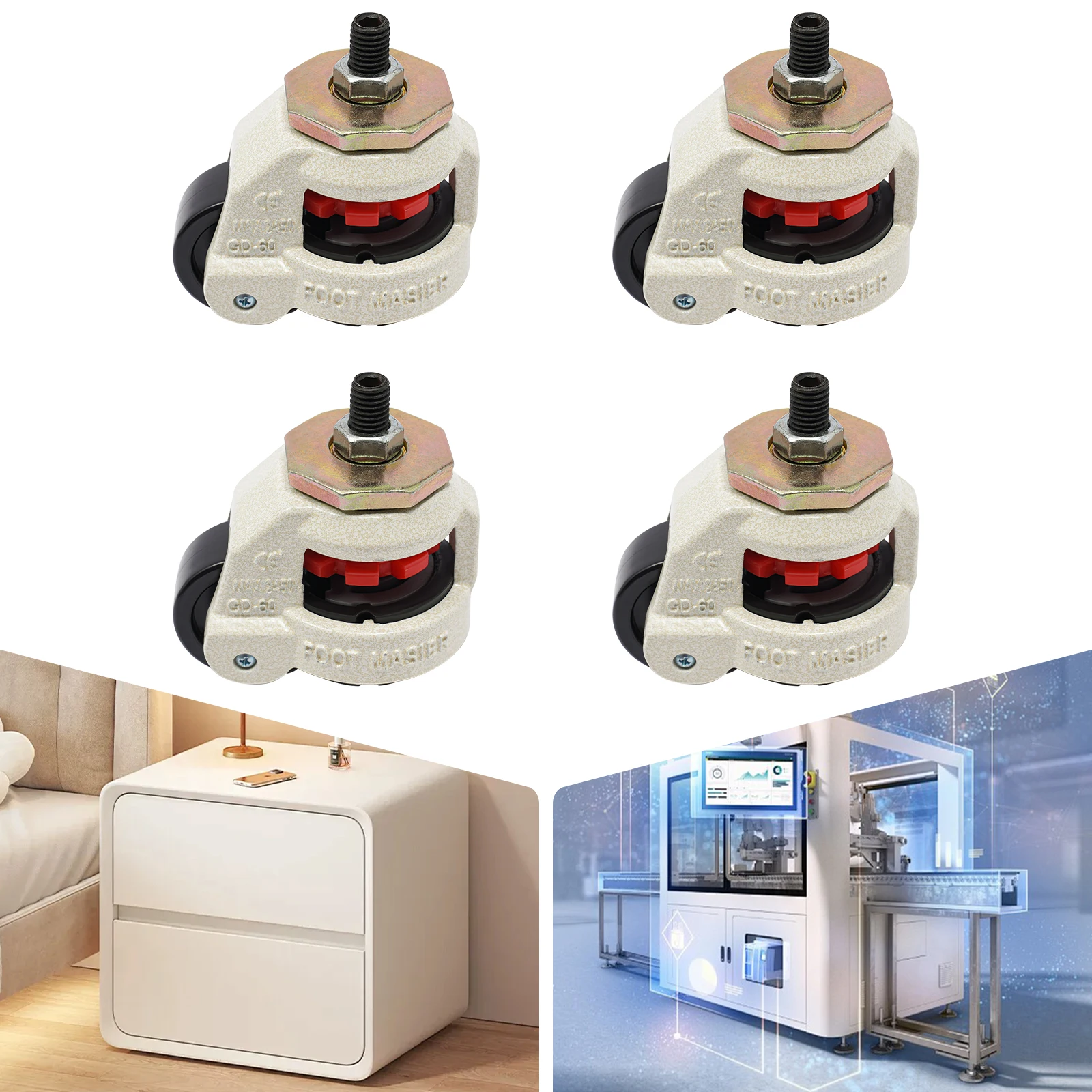 4pcs Heavy Bench Nylon Wheels Leveling Wheels Ajustable Caster/Wheel 360 Steel Rotating for Home Outdoor Electronic Equipment