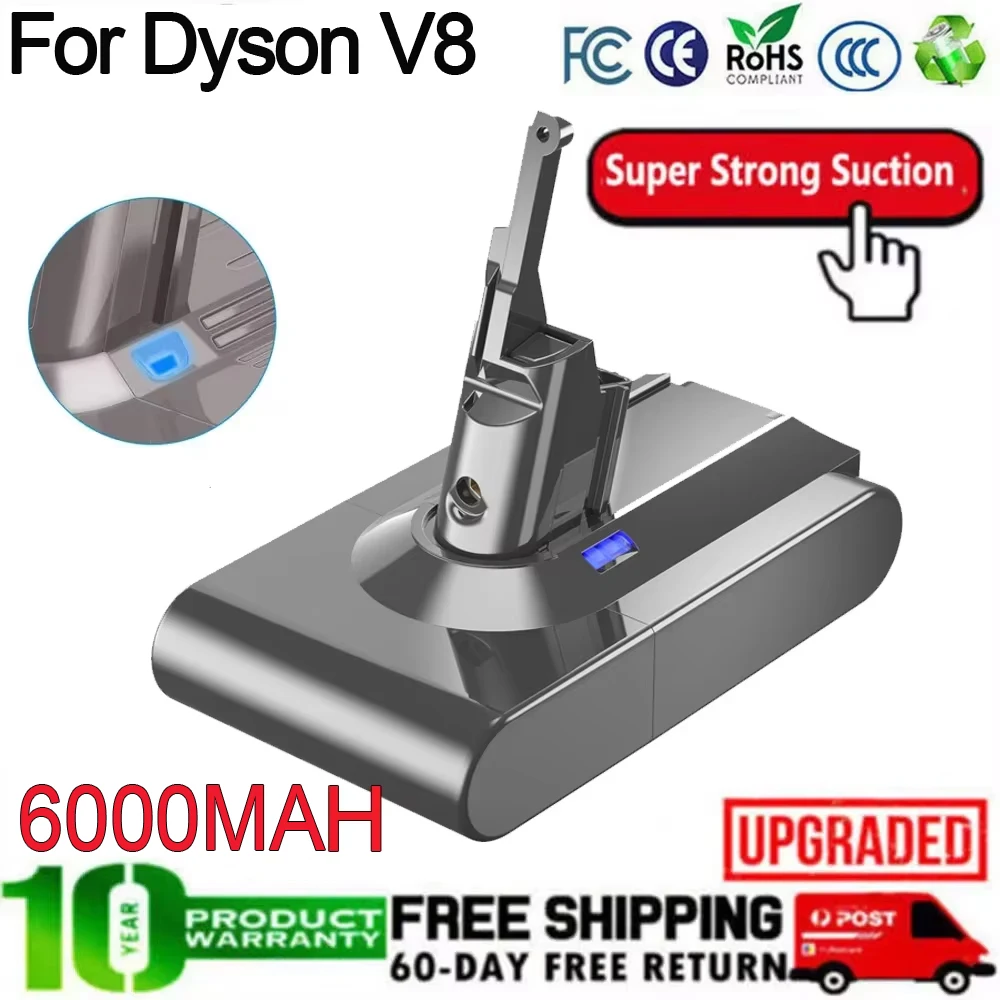 6000mah Battery For Dyson V8 Replacement For Dyson V8 Absolute V8 Animal SV10 Vacuum Cleaner Cordless Power Tools Rechargeable