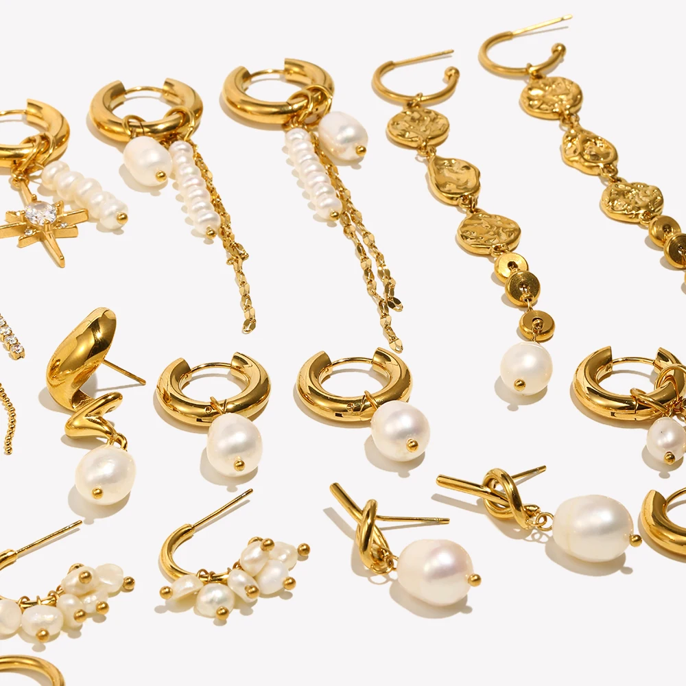 E.B.belle Elegant Freshwater Pearl Stainless Steel Tarnish Free Hoop Earring Gold Plated Jewelry For Women