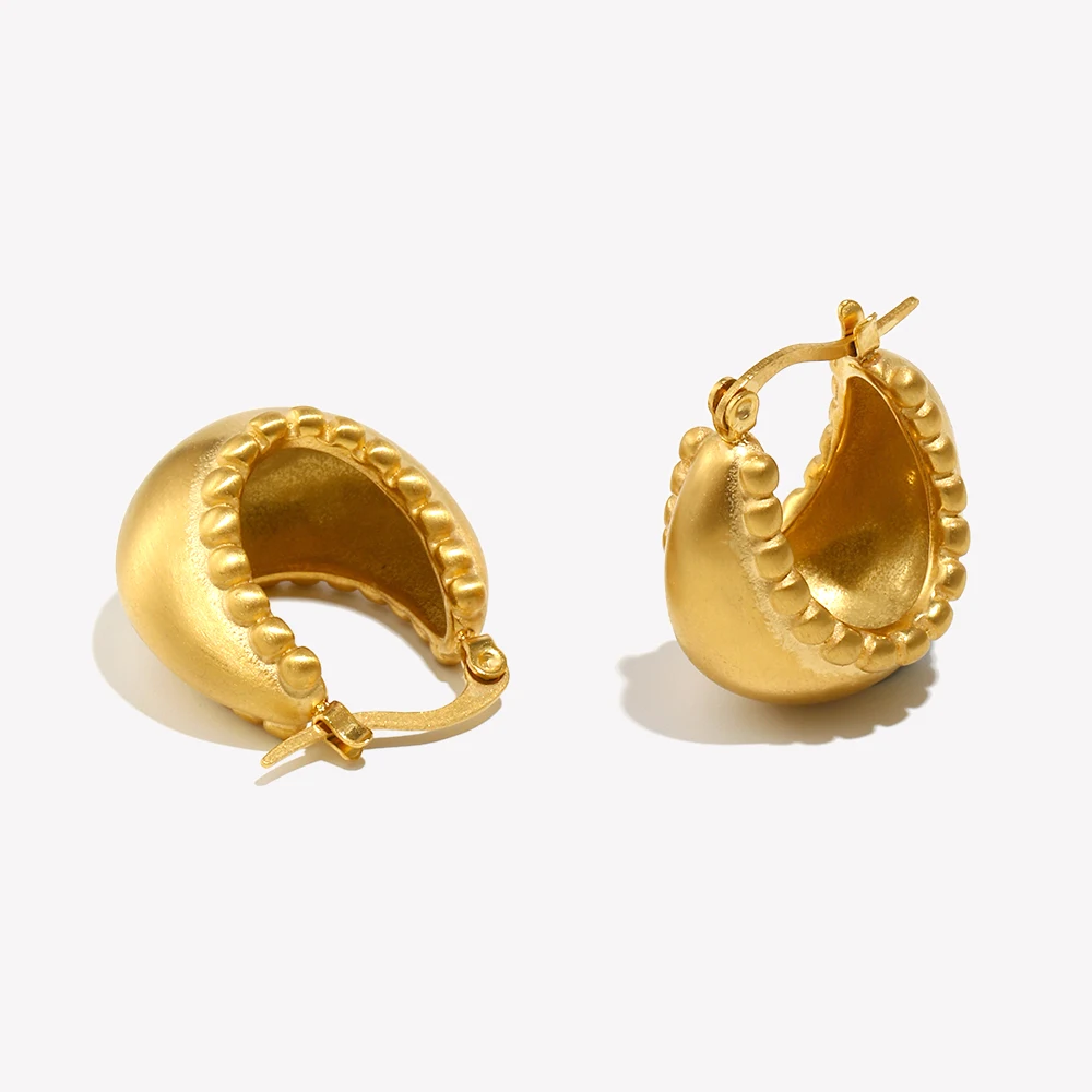 E.B.belle Official Store Stainless Steel Lacework Basket Matte Golden Hoop Earrings Party Statement Jewelry Earrings For Women