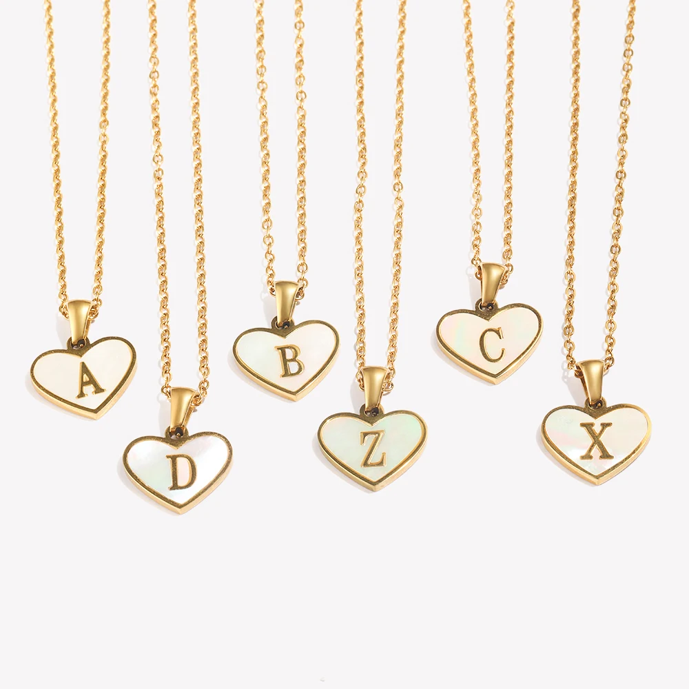 Heart Shell Letter Pendant Necklace Cute Water Resistant 18K Gold Plated Women's Neck Chain 316L Stainless Steel Accessories