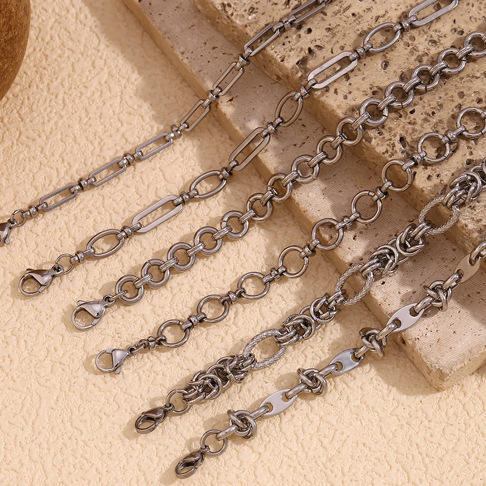 E.B.belle Silver Color Paper Clip Splicing Rough Round Chain Bowtie Rhombus Geometric Minimalist Love Bracelet