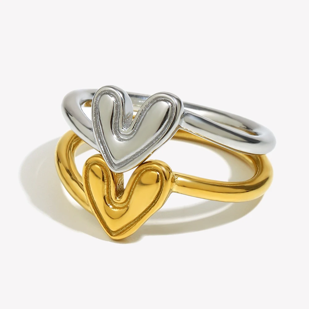 E.B.belle Stainless Steel Simple Style Heart Pattern Ring Tarnish Free Cute Statement Jewelry Accessory For Women