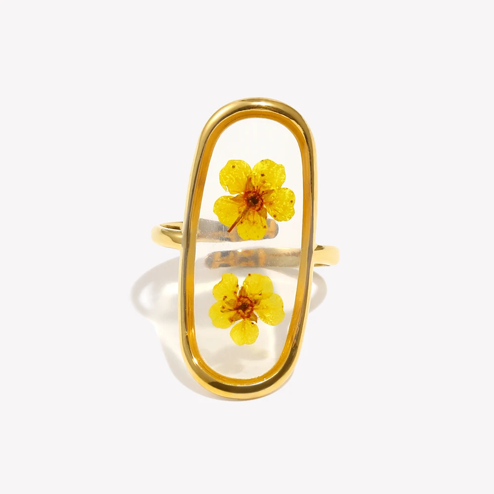 E.B.belle Fashion Oval Shape Orange Flower Adjustable Ring Exaggerated Stainless Steel New Hypoallergenic Chic Jewelry Gift