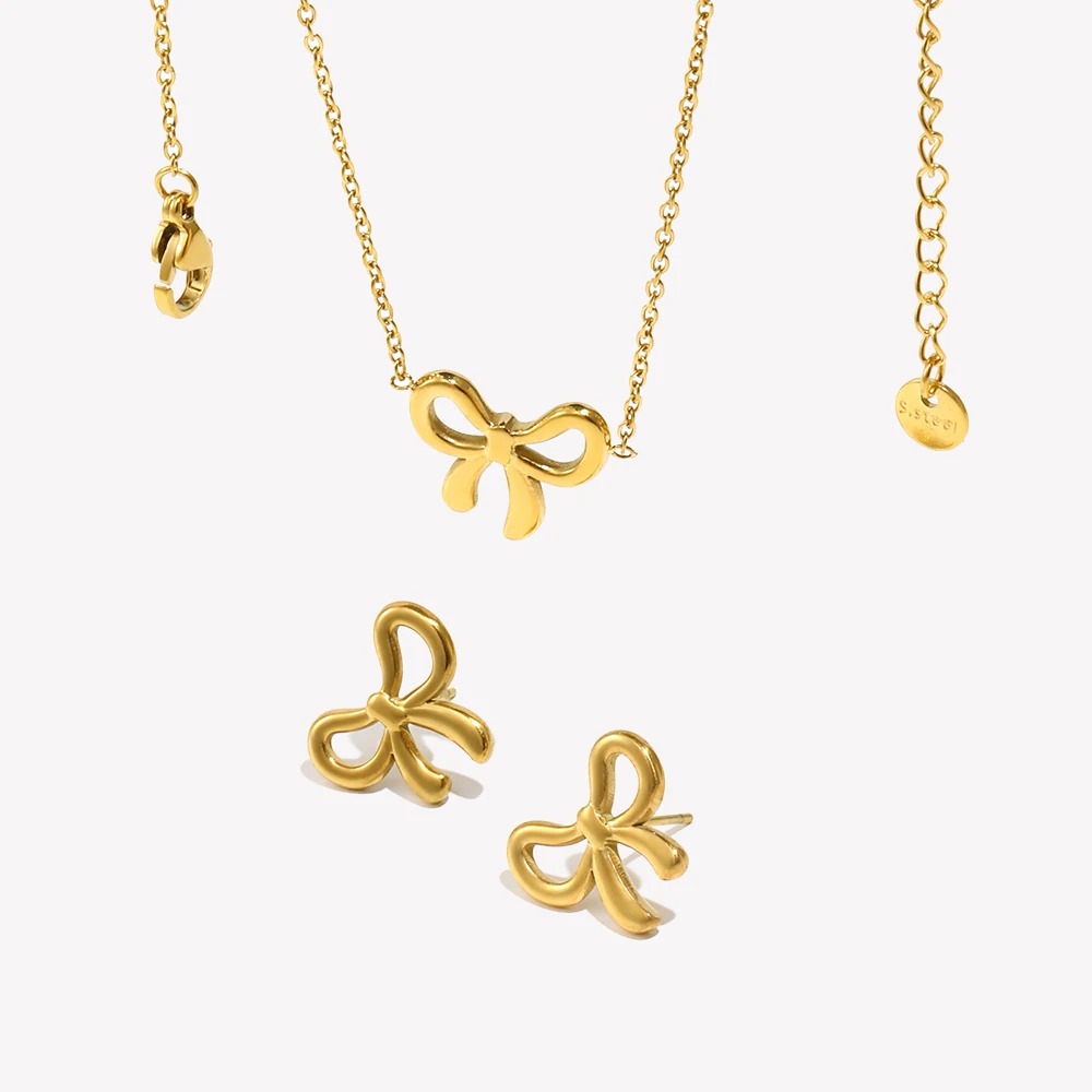 E.B.belle Simple and Sweet Bow Earrings Tarnish Free Silver Color 18K Gold Plated Jewelry 316L Stainless Steel Accessories
