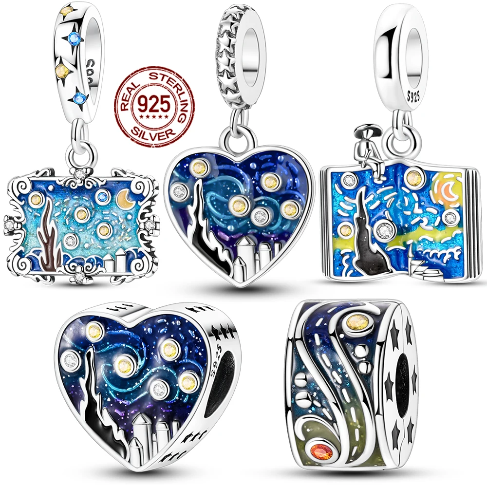 Hot Sale New 925 Sterling Silver Van Gogh Starry Sky Series Pendant Charms Jewelry Fit Original 925 Bracelet For Women DIY Gift