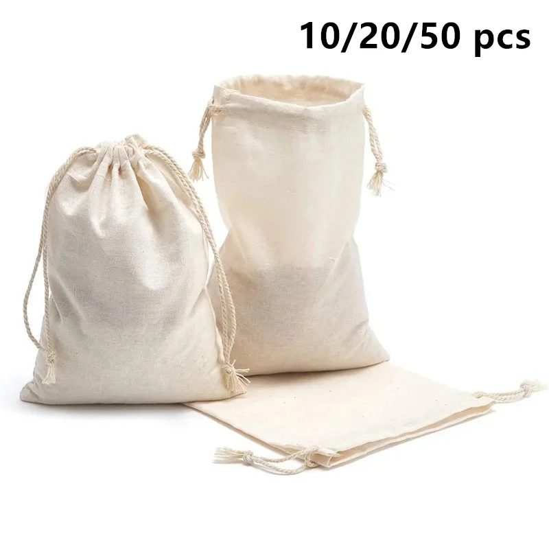 10/20/50 Pcs Dustproof Cotton Storage Bags Gift Fabric Package Plain Drawstring Pouches for Christmas Wedding Party Favors