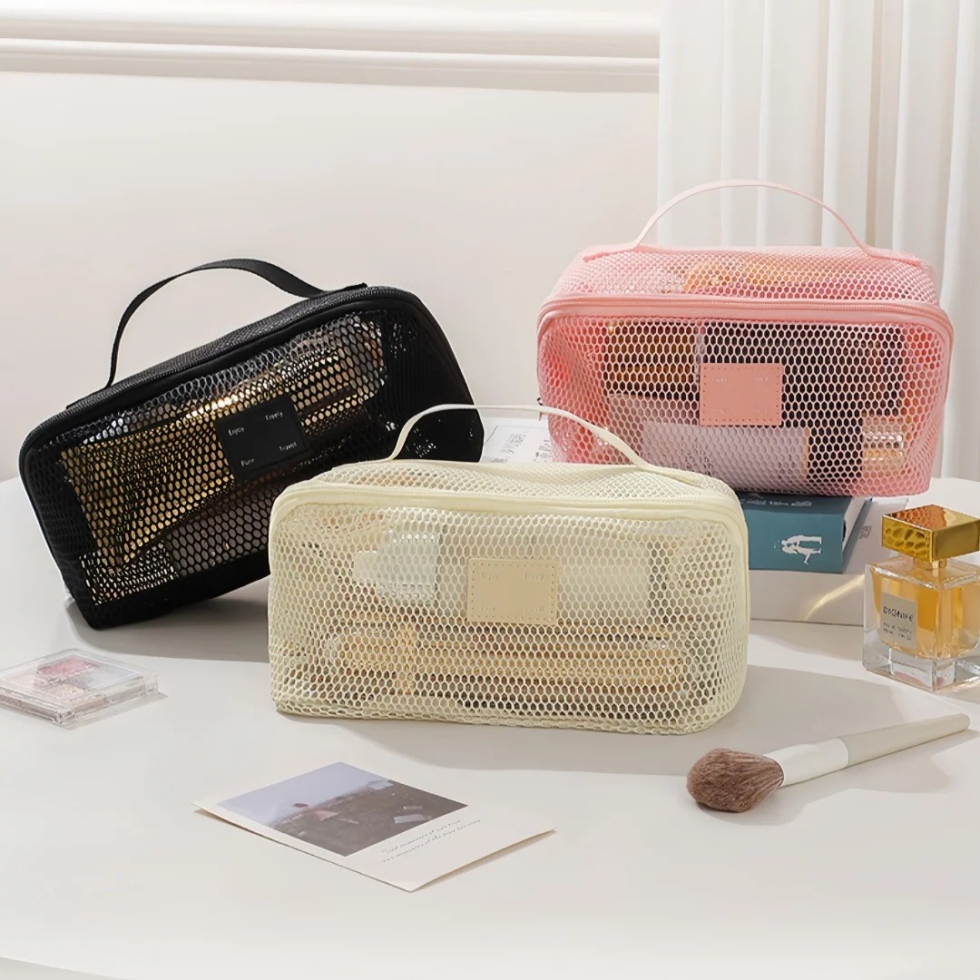 Transparent Mesh Storage Bag with Partition Pockets, Visible Large Opening for Easy Access, Essential for Travel