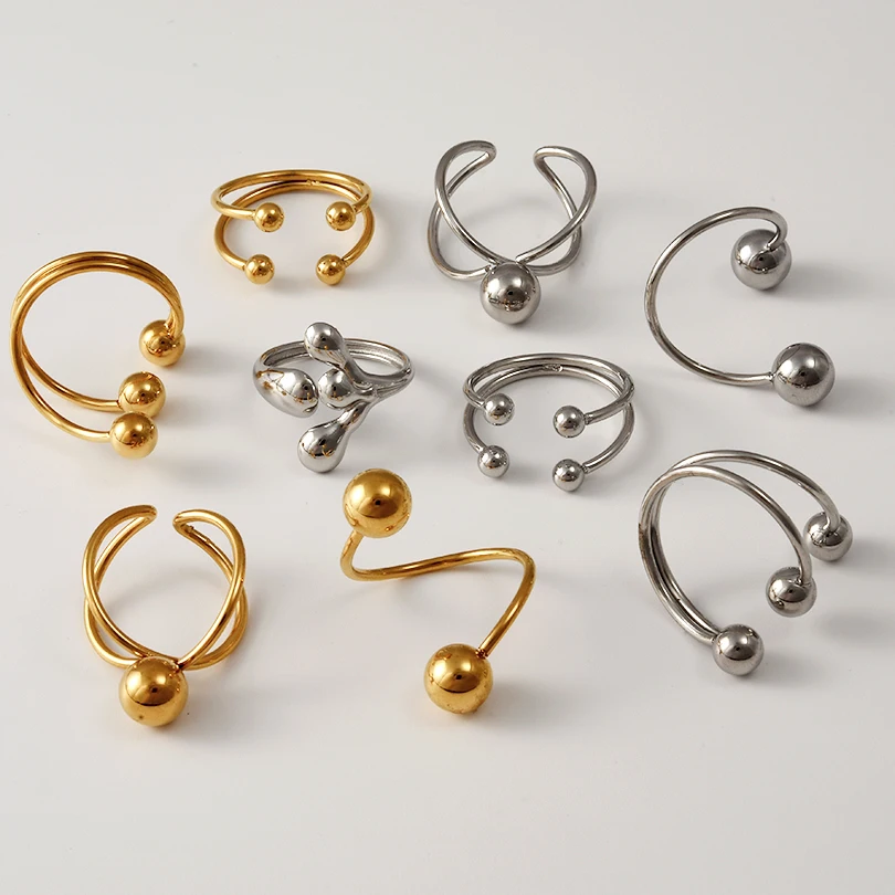 Personality Minimalism Open Adjustable Beads Ring Waterproof Stainless Steel Rings For Women Men Accessories Finger Jewelry Gift